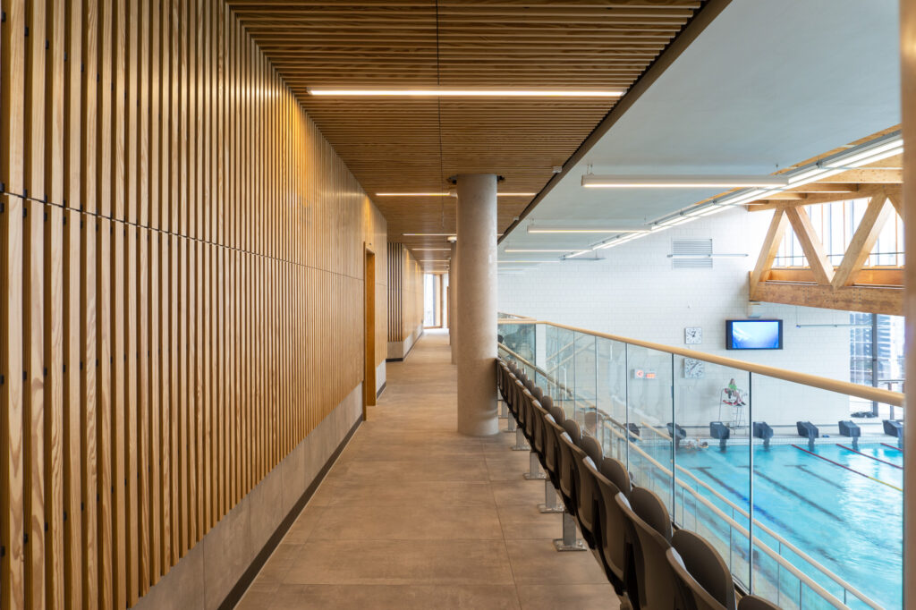 The complex design process had to work hard to achieve the Passivhaus standards and work efficiently to support the demands of the consumer, flowing like a conventional leisure centre and delivering an outstanding customer journey. Consumers will note the high-quality materials used in the construction, the quality of air and temperature and purposeful flow through the building that combines functionality and beautiful interior design.