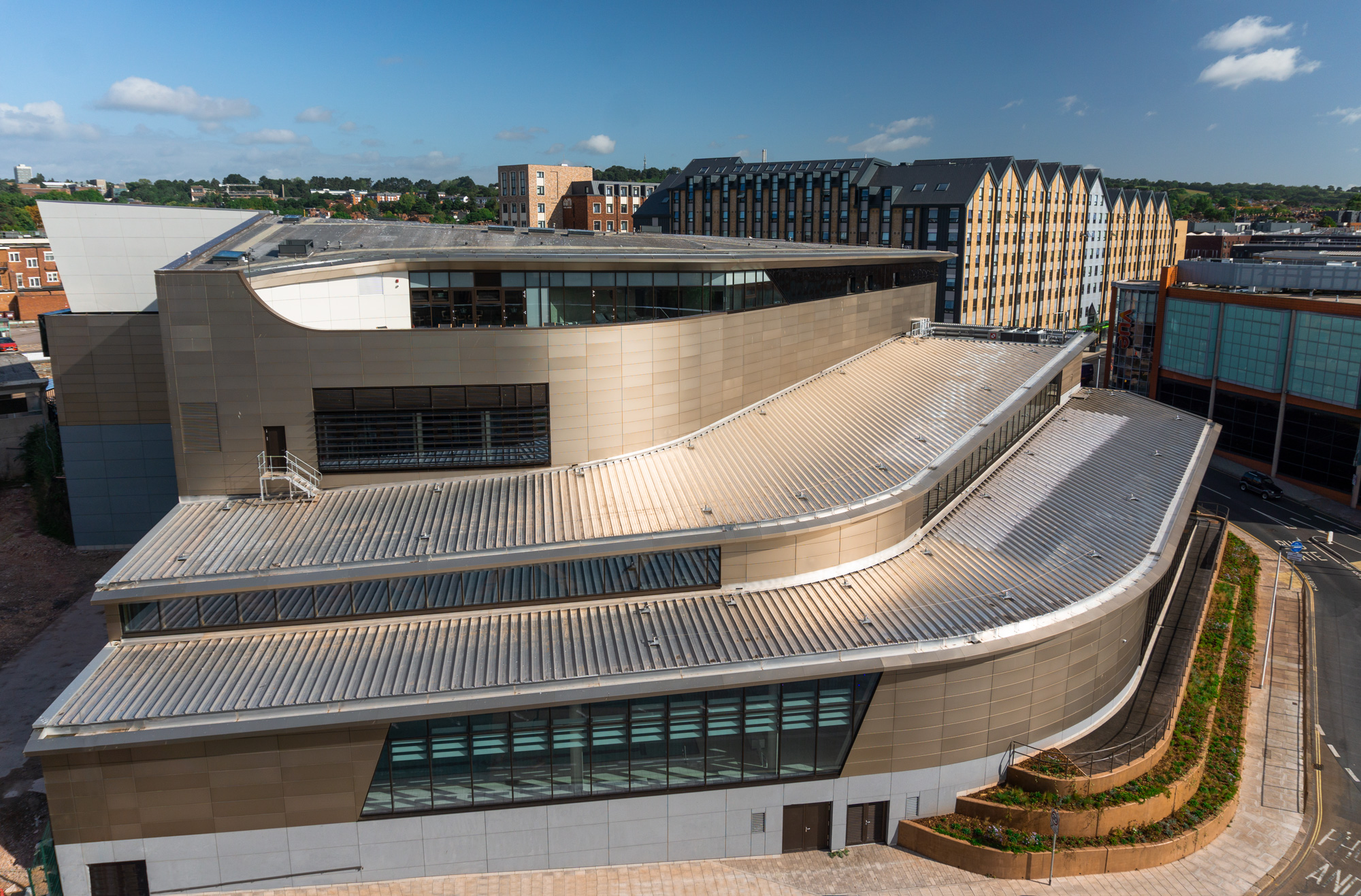 Opened in 2022, St. Sidwell’s Point Leisure Centre is the first multizonal Passivhaus sports centre in the world. Located in the city centre and spread over 5 floors, it acts as a beacon of social and environmental excellence. St, Sidwell’s point features an eight lane, 25m competition pool, a 20x8m community pool, children’s plash pool, 700sqm gym, 2 studios, play zone, café and spectator seating area. In addition to the more conventional leisure facilities, St. Sidwell’s Point also boasts a health spa, spa pool, heat experiences, four treatment rooms, a relaxation area and a roof terrace.